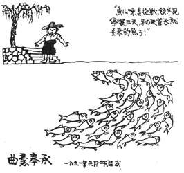 1957年,華君武推出了“人民內(nèi)部諷刺漫畫”。他針對大躍進(jìn)浮夸風(fēng)創(chuàng)作了《疲勞過度癥》,針對動(dòng)不動(dòng)給人扣大帽子創(chuàng)作了《杜甫檢討》,針對長篇空洞發(fā)言創(chuàng)作《誤人青春》,針對生造簡化字創(chuàng)作《倉頡認(rèn)字》,針對多子女創(chuàng)作《大“小家庭”》,批評(píng)相聲水平不高創(chuàng)作了《聽相聲?》等,都給讀者留下了極為深刻的印象!皟(nèi)部諷刺漫畫”在“文革”中成為“罪證”,遭到長期批判,華君武被迫擱筆10年,但”文革“后,這把”匕首“依然鋒芒犀利,創(chuàng)作出一系列批評(píng)諷刺時(shí)弊和人性弱點(diǎn)的漫畫。