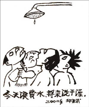 華君武的漫畫,早年長于政治時(shí)事漫畫,后期以諷刺畫為主,辛辣諷刺社會(huì)上種種丑陋、落后現(xiàn)象。構(gòu)思巧妙,入木三分,富有幽默感。