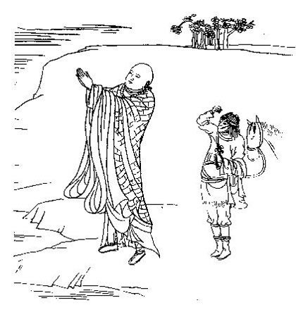 在榆林窟第2窟、第3窟、第29窟及東千佛洞第2窟內,都繪制了這樣一幅壁畫:一名出家人面對洶涌的河水雙手合十,身后長著猴相的弟子牽著一匹馱經老馬,遠處有一片樹林。