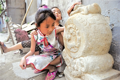 昨天下午,記者來(lái)到海淀區(qū)青龍橋街道騷子營(yíng)社區(qū),石門墩就擺在李玉財(cái)家門外。石門墩高約50厘米、寬70厘米左右、厚度約20厘米,由整塊的石材雕刻而成,抱鼓上雕刻有精致的花紋。李玉財(cái)說(shuō),如果這個(gè)石門墩真是文物,他會(huì)立刻上交,“文物是國(guó)家的,要交給政府,好好保護(hù)起來(lái)”。