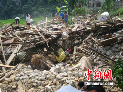 中新網(wǎng)河池8月4日電 (羅開(kāi)革 王剛)廣西河池市鳳山縣公安局4日上午透露,該縣3日發(fā)生大面積山體滑坡事故,上萬(wàn)立方的泥土和石頭摧毀了5間民房。所幸房?jī)?nèi)人員及時(shí)逃生,沒(méi)有造成人員傷亡。