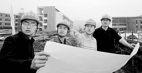 。學校建成后可容納5200名學生在校學習。今年9月1日,北川中學校園將正式交付使用。圖為施工現(xiàn)場的工程技術人員。