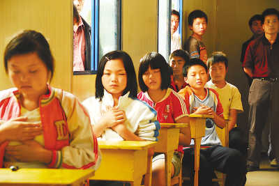 “有了教室,有了生命,我們能夠在廢墟中站立起來,開始更美好的生活,我們強不強?”——在董慧娟的帶領(lǐng)下,28個孩子舉起右臂,右手握拳,喊出“強!強!強!”的口號。