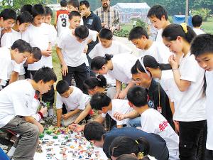 漂亮的別墅、美麗的天使、威武的坦克……各式各樣的小玩具被心理救援隊員們一字?jǐn)[開。“每人挑一個喜歡的,然后坐到沙盤邊來,聽我給你們講故事好不好?”復(fù)旦大學(xué)心理學(xué)教授申荷永招呼著。很快,每個沙盤邊就圍坐了七八個學(xué)生!澳銥槭裁匆x房子模型呢?”“我家的房子被震壞了,希望能有一幢堅固的房子……”心理援助就以這樣問答的方式展開。通過這樣挑選玩具后自由表達心聲的方法,能讓孩子逐漸擺脫對地震的恐懼感,大膽說出自己的想法和愿望。