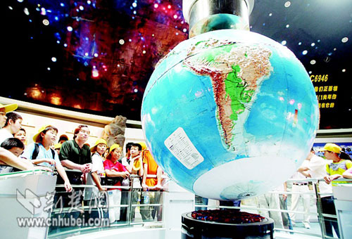 不久前爆發(fā)的汶川大地震,讓大家對(duì)地球的構(gòu)造和地震成因格外留意。在逸夫博物館的地球展廳,大家聚在磁懸浮地球儀前,聽(tīng)博物館館長(zhǎng)徐世球現(xiàn)場(chǎng)講解地震的成因,以及地震發(fā)生時(shí)逃生的要領(lǐng)!暗卣鹗堑厍蜥尫拍芰康囊环N方式,主要發(fā)生在地幔層,地球內(nèi)部板塊在不斷地進(jìn)行擠壓和分裂,一旦運(yùn)動(dòng)劇烈,便造成強(qiáng)烈地震或火山噴發(fā)!毙焓狼蚝(jiǎn)明扼要地介紹完成因后,重點(diǎn)說(shuō)到了地震中逃生的要領(lǐng)。