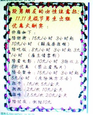 光棍節(jié)向大學(xué)“女光棍”開放的男生“招租”廣告。