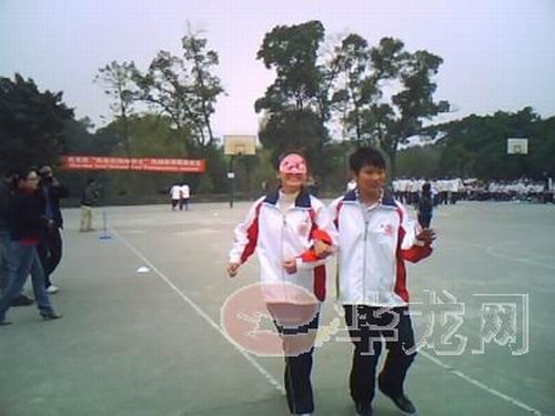“什么都看不見,完全沒有方向感,心里感到很害怕!痹25米盲人短跑接力賽上,高(一 )17班的周玲同學剛下場就緊張地對記者說道。因為帶著眼罩,整個世界都是黑暗的,只能在摸索中前進,最后,在伙伴的帶領(lǐng)下周玲才走到了終點。