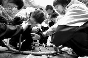 昨天,周口店實驗中學初一的同學們分成小組,現(xiàn)場“做”起山頂洞人,其中一組同學砸果實,另一組嘗試鉆木取火。記者看到,相比較而言,砸果實的輕松些,鉆木取火的同學們可就沒這么幸運了,他們拿著木棍使勁又搓又鉆,最后也沒有一組真能實現(xiàn)“鉆木取火”。