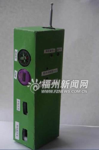 黃雅倩設(shè)計的遇險應(yīng)急器,外型像一個改良過的“大哥大”,體積不大,但囊括了用于收音機(jī)和生命探測儀發(fā)出信號的電路板、充電電池、分鳴器、發(fā)光二極管、藥包等10多個小物件。