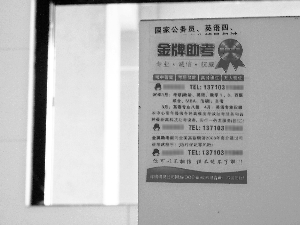 近日,廣州大部分高校均已開學(xué),同時(shí)計(jì)算機(jī)等級(jí)以及英語(yǔ)四六級(jí)等多項(xiàng)考試也被擺上眾多考生們的日程表。而就在此時(shí),部分網(wǎng)站以及校園的公告欄,甚至是校園廁所墻上,各種惡俗小廣告也隨之現(xiàn)身,有人吹噓有各種考題及答案來(lái)源可靠,另外,出租“情侶旅店”的小廣告也悄然出現(xiàn)。記者調(diào)查發(fā)現(xiàn),絕大多數(shù)的小廣告都存在欺詐,見錢后隨即“人間蒸發(fā)”。校方提醒廣大學(xué)子,不要輕信各種有關(guān)考題出售的信息,一旦發(fā)現(xiàn)應(yīng)及時(shí)舉報(bào),配合打擊。