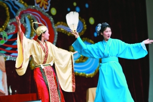 信息時(shí)報(bào)訊 (記者 梁健敏 通訊員 黃雄) 話說“周瑜”拜訪“曹操”,隨從就在一旁提醒千萬別提“小喬”,不過“周瑜”機(jī)警地回答道:“我有氫氧化鈉可以中和醋酸,不怕……”以上的對話是昨日廣鐵一中的第19屆藝術(shù)節(jié)上,舞臺(tái)劇表演《周瑜那些事》中的一幕。時(shí)下惡搞成風(fēng)已經(jīng)進(jìn)入學(xué)生群體,到底是創(chuàng)新還是破壞原著遭到質(zhì)疑。