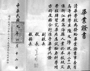 近日,陳溥先生從家中的箱底翻出一張父親留下來(lái)的當(dāng)年清華學(xué)校的畢業(yè)證書,就感到很好奇。