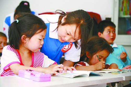 肖家河社區(qū)的流動人口約有5萬人,其中,至少有1500名學生,而且大部分為小學生。“多虧了這些大學生,要不,孩子們放學就沒人管了!”肖家河社區(qū)居委會主任楊玉玲介紹,這些孩子來自周邊的希望小學、明圓小學、綠園小學、肖家河小學等六七所小學,他們的父母都是外來務工者,忙著做小買賣,每天晚上七八點鐘才回家,又舍不得花錢給孩子報興趣班,孩子們放學后四處亂跑,常常連作業(yè)都不寫,脖子上掛著把鑰匙在外面瘋玩。