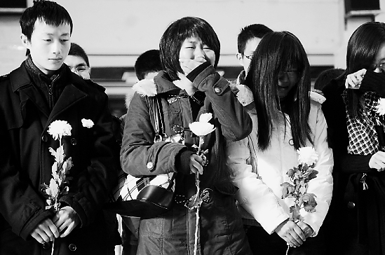 “起程了,濟源!到了天堂,記得給我們發(fā)條短信。兄弟,走好!”任同學的話音還未落,追悼會現(xiàn)場已然哭聲一片。