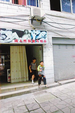 昨天,記者來(lái)到這家成人用品店,外面一個(gè)醒目招牌上,有3名熱辣女郎搔首弄姿,約10平方米店面擺放著各種成人用品。店內(nèi)一側(cè)有一條狹長(zhǎng)通道,是通往二樓游戲廳的必經(jīng)之路。