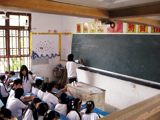 昨天下午3時許,羊城晚報記者來到甲子第一中學(xué)。下午第二節(jié)課的上課鈴恰好敲響,在操場課間休息的學(xué)生們紛紛跑回教室,也有不少學(xué)生磨蹭著不肯進去。羊城晚報記者從教學(xué)樓的一樓走至三樓,只見不少教室均看不到老師在授課,學(xué)生們被安排自習(xí),有班干部在黑板上抄寫練習(xí)題。“有沒有老師給你們上課呀?”有幾個靠門口的同學(xué)搖搖頭,稱他們從早上開始就自習(xí)了。