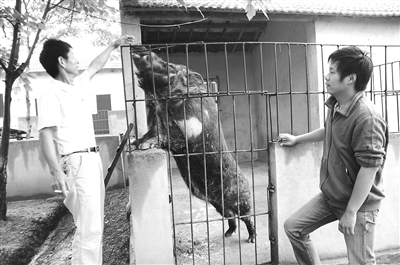 本報(bào)訊(記者 蔡早勤 通訊員 保升 熊明木)昨日,在黃陂區(qū)魯臺社區(qū)天井村一處山坡地的圍院里,一名小伙子正在給一只野豬喂食。小伙子叫鮑風(fēng)雪,今年25歲,是武大法學(xué)專業(yè)的本科生,畢業(yè)后他當(dāng)起豬倌,專養(yǎng)野豬。