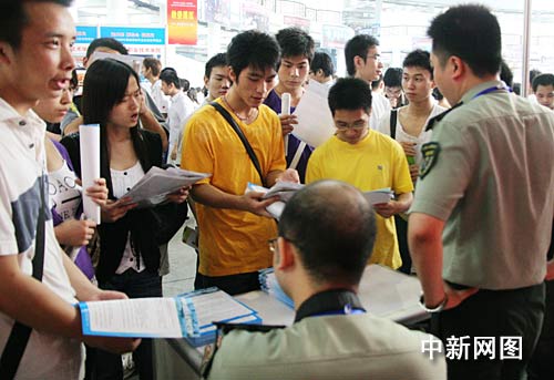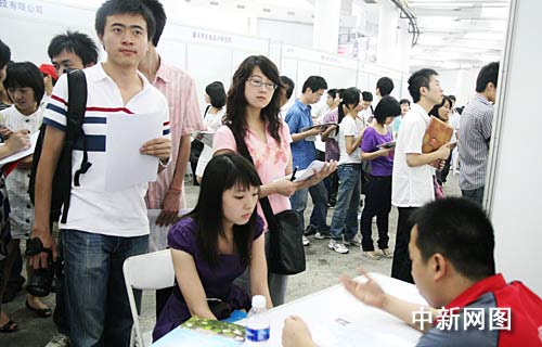 中新網(wǎng)重慶6月15日電 (郭虹 孟幻) 15日,重慶市2009年普通高校畢業(yè)生就業(yè)雙選會舉行,370多家用人單位提供近1萬3千個崗位,吸引了上萬名畢業(yè)生前來求職。