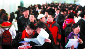 “本科學(xué)歷肯定是不夠用。”面對(duì)滿場招聘啟事上“碩士”、“博士”、“海外博士”的要求,北大法律系本科生小李說自己并不僅考慮北京的工作,此前剛參加了土地督察南京局公務(wù)員考試,以0.1分之差沒能進(jìn)入面試。