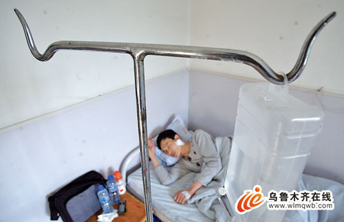 烏魯木齊在線訊(記者劉盼 梁坤 實(shí)習(xí)記者郭曉寧攝影報(bào)道) 5月13日中午,新疆法制報(bào)攝影記者郭詠在烏魯木齊市幸福路15小學(xué)附近采訪時(shí),遭到一店主毆打,面部受傷。新疆記者協(xié)會(huì)副主席、新華社新疆分社社長(zhǎng)樊英利前往醫(yī)院看望慰問(wèn)受傷記者。