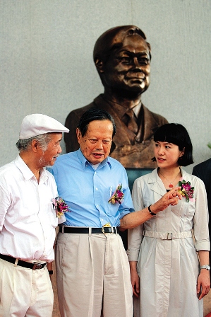 昨日,著名物理學家、諾貝爾獎得主楊振寧及妻子翁帆出現(xiàn)在東莞理工學院,為該校新建的一座“楊振寧銅像”揭幕。