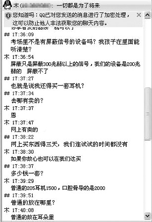 對(duì)方解釋說,高先生要拿到答案,首先必須買一套“2009微型口腔骨傳導(dǎo)耳機(jī)”。這套設(shè)備是將微型耳機(jī)放在考生嘴里帶進(jìn)考場(chǎng),出售答案者將答案通過電話或 QQ 發(fā)送給家長(zhǎng),然后由家長(zhǎng)手持發(fā)射器在考場(chǎng)外給考生傳送答案。如果高先生有意購(gòu)買口腔骨傳導(dǎo)耳機(jī),他們可以幫助高先生買,2000元一套。