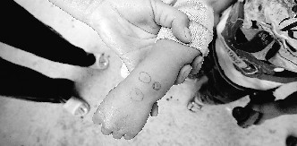在幼兒園門口,聽說記者來采訪,不斷有家長帶著孩子圍攏過來。小謙的頭頂上被畫了幾個圈,他媽媽指著這些圈點告訴記者:“這個老師太狠心了,連頭上都亂打針。”小謙的媽媽對記者說,他們是今年9月才把孩子送去這個幼兒園的,之前兒子一直好好的,但近段時間以來,只要他們每次送孩子上學(xué),娃娃都會哭著喊著不去幼兒園,而且一提到老師就哭,直到有一天,她問小謙為什么不愿意去上學(xué),兒子才說:“去學(xué)校老師就打針,我不去上學(xué)!