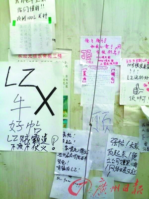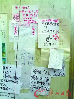 上海第二工業(yè)大學河東校區(qū)的一些學生,因不滿校園網速極慢,連上QQ都困難,紛紛在寢室門口張貼出一份份類似網上灌水的“跟帖”,集體聲討學校網絡公司(如圖)。有同學把這種頂帖的盛況拍下來放到網上,引來不少網友的關注,有網友稱平時大家在網上發(fā)牢騷,學校根本不知道,但通過這種現實跟帖的方式,學校就不得不關注。上海第二工業(yè)大學相關負責人回應稱,目前事情已經解決。