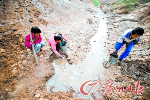中莊小學(xué)算是距離水源比較近的學(xué)校,走逾一公里的山路就能取水。水源是山溝里一條渾濁的小溪,中莊小學(xué)高年級的學(xué)生要輪流到山溝里抬水。學(xué)校老師說,這樣的水是不能飲用的,只能用于灑水。