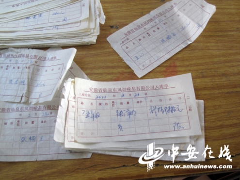 李校長(zhǎng)還給記者出示了今年收取260元費(fèi)用的收據(jù),收據(jù)上居然印著“安徽省臨泉東風(fēng)調(diào)味品有限公司入庫(kù)單”的字樣,上面寫(xiě)著學(xué)生的姓名、班級(jí)和所交的260元費(fèi)用,每一張右下角都是用相同筆跡簽了一個(gè)“周”字,據(jù)李校長(zhǎng)介紹簽“周”字的人是陳子玉的兒媳婦,她負(fù)責(zé)來(lái)學(xué)校收錢(qián)。