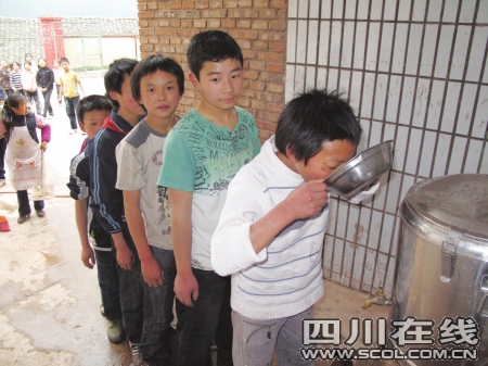 “同學(xué)們,現(xiàn)在是集中供水時間,請大家排好隊到供水點喝水。”24日下午2時,橫江鎮(zhèn)西林村堰村小學(xué),校長官文權(quán)敲響了清脆的鐵鐘,孩子們從各班級教室里蜂擁而出,跑向操場邊的開水爐旁排隊。