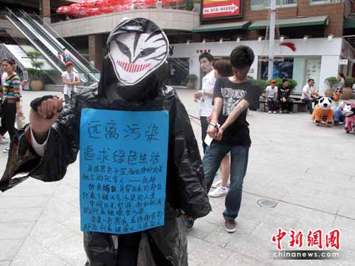 大學(xué)生們從另類藝術(shù)的角度呼吁人們關(guān)注氣候,倡導(dǎo)環(huán)保低碳的生活方式。其中,他們利用廢報(bào)紙、塑料袋等廢舊物,精心制作了時(shí)尚環(huán)保服裝,吸引了市民的眼球,而學(xué)生們身著這些衣服表演的“另類”時(shí)裝秀更是讓市民大開眼界。