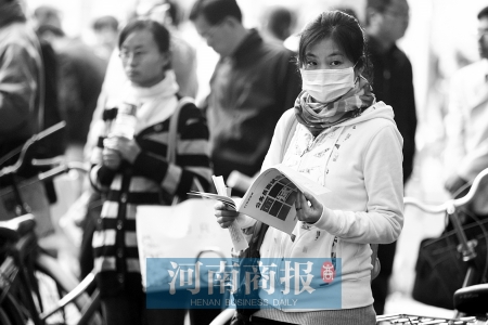 當(dāng)天,鄭州下著小雨,不少考生擠在閱報(bào)欄下,翻看著手中的參考資料。
