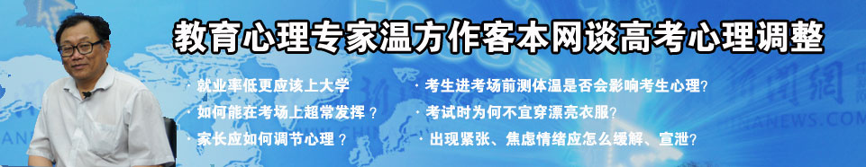心理篇:高考在即,考生和家長都不免產(chǎn)生焦慮的情緒,事實上,家長的壓力是造成考生焦慮緊張的主要原因。家長過分強調(diào)高考的重要性導(dǎo)致孩子精神緊張,而考生在考前焦慮、煩躁,很大程度上是因為對自己的定位不準(zhǔn)確。[詳細]
