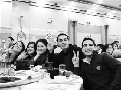 “ 這個(gè)是基圍蝦,那個(gè)是甜湯”,已經(jīng)在華中大MBA漢語班學(xué)習(xí)了一年半的黎巴嫩小伙子Chadi專門為自己起了個(gè)中文名字——夏小龍。雖然是第一次參加中國式團(tuán)年飯,但在他所在的那一桌,儼然一個(gè)中國通,不時(shí)給同桌留學(xué)生報(bào)菜名,回答他們的疑問。他笑著告訴記者,他很喜歡吃中國菜,在家鄉(xiāng)時(shí)也常去中式餐館吃飯,F(xiàn)在就像過自己國家的節(jié)日一樣,很happy(快樂)。