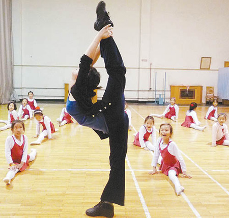 徐馳和幾個(gè)女生被分到中央民族大學(xué)附近的一所舞蹈培訓(xùn)學(xué)校實(shí)習(xí)。他雖然只在周末工作,但一天要連續(xù)帶6個(gè)班,除了中午有1個(gè)小時(shí)能坐著吃點(diǎn)泡面當(dāng)午飯,大部分時(shí)間都是站著的。徐馳教基本功:踢腿、下腰、開(kāi)胯……這都是一些帶有危險(xiǎn)性的動(dòng)作。教基本功,老師要做的不僅是喊節(jié)奏,更重要的是在安全的前提下指導(dǎo)學(xué)員們把軟開(kāi)度練得更好,這是學(xué)舞蹈最基礎(chǔ)的部分。