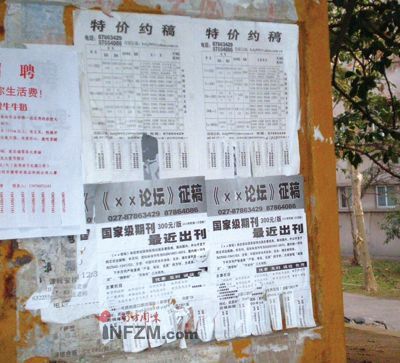在高校里,在學(xué)術(shù)界,這已是個公開的秘密,或者是中國式的潛規(guī)則。否則,那些“論文中介”也不可能應(yīng)運(yùn)而生。如果你把轎車停在大學(xué)門口,可能會有雪片一樣的名片塞進(jìn)車窗——“想發(fā)表論文嗎?期刊中介為你排憂解難!”而在“百度”上搜索,論文代理商的名字成百上千。