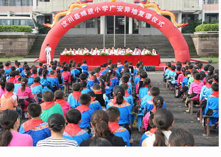 處于5.12汶川大地震震中區(qū)的綿虒小學(xué)在這次地震中所有教學(xué)建筑都受到不同程度損害,9個班443名師生停課已達3個月之久。“這里的學(xué)習條件比我們哪里好多了,感謝廣安市區(qū)的叔叔阿姨給我們提供了這么好的學(xué)習和生活條件,我一定珍惜這來之不易的學(xué)習機會,好好學(xué)習。” 坐在寬敞明亮的教室里,手握語文書,綿虒小學(xué)五年級學(xué)生陳思雨向記者表達了自己最真摯的心聲。