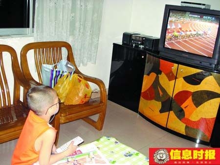 奧運(yùn)雖好看,可居住在星匯園的張女士這兩天卻有點(diǎn)擔(dān)心了。開(kāi)學(xué)就讀五年級(jí)的兒子軒仔是個(gè)體育愛(ài)好者,這個(gè)暑假為了看奧運(yùn),連之前一直吵著的云南十日游都放棄了:從奧運(yùn)開(kāi)幕至今,軒仔每天唯一的活動(dòng)項(xiàng)目就是盤在沙發(fā)里抱著遙控器調(diào)來(lái)調(diào)去,從一早的《朝聞天下》看到晚上十一點(diǎn)多鐘的《全景奧運(yùn)》,中途去趟洗手間軒仔都會(huì)一路小跑。