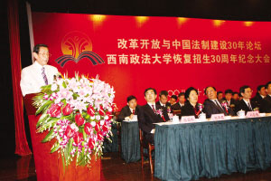 論壇伊始,張軒首先代表市委、市政府向各位領(lǐng)導(dǎo)和來(lái)賓表示熱烈的歡迎。她說(shuō):“改革開放30年來(lái),我國(guó)的民主法制建設(shè)取得了巨大的成就,這其中有西南政法大學(xué)及其學(xué)子們的一份可貴的貢獻(xiàn)!