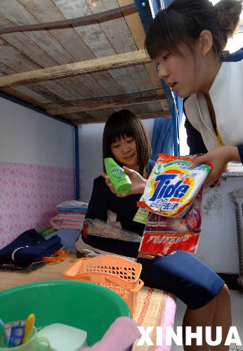 為迎接這些災(zāi)區(qū)學(xué)生的到來,石家莊外語翻譯職業(yè)學(xué)院專門成立了“迎接四川災(zāi)區(qū)同學(xué)”籌備組,投入10多萬元為他們做好食宿安排,采購了被褥、蚊帳、睡衣、洗漱用品等日常生活用品,并且準(zhǔn)備了專項(xiàng)資金,每月將為每個(gè)學(xué)生發(fā)放500元生活補(bǔ)助。