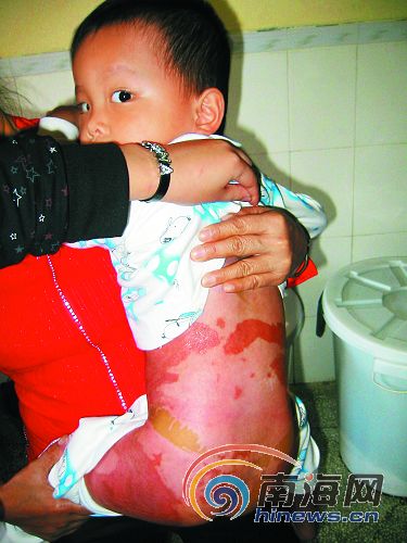 小志的母親黃春秀對記者說,她和丈夫楊昌奇不久前從定安來到?诖蚬,在義興街租房居住,幾個月前把小志從定安接到?冢譀]時間照顧孩子,就把他送進了附近的育才幼兒園,平時小志在幼兒園食宿。10月14日晚上,她突然接到幼兒園電話說孩子被燙到了。她和丈夫立刻趕到187醫(yī)院,看到孩子被燙掉的皮粘在被子上,非常慘。