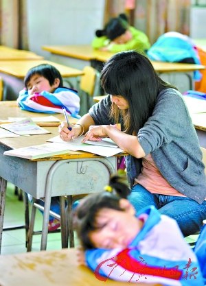 早上6時開始去接學(xué)生,直到下午6時送學(xué)生回家后才能下班,“晚上學(xué)校還規(guī)定7時30分到9時,老師必須到辦公室備課、改作業(yè)!