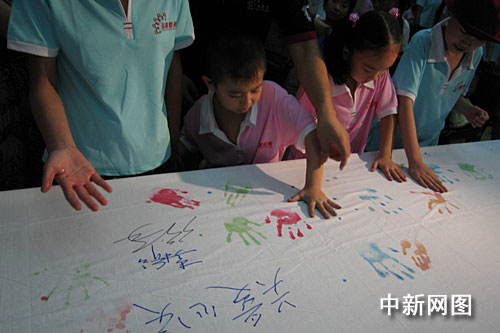 中新網(wǎng)武漢7月13日電 (段娟娟 艾啟平)13日下午,“關愛心靈、健康成長”——關懷受艾滋病影響少年兒童第二屆夏令營在武漢舉行開營儀式。開營式上,小營員們舉行了“心連心”結對互助留簽名手印活動,并得到了贈送的書包。