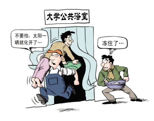 “每天晚上到6時之后這段時間洗澡最擁擠,很多人晚上都有課;而且如果上完課回來洗澡,水就不熱了!币呀(jīng)洗了幾次冷水澡的大二學(xué)生小囡忒無奈。在汕頭大學(xué),部分宿舍的熱水溫度不高,或者時冷時熱,這是讓學(xué)生們抱怨得較多的。有學(xué)生甚至夸張地嚷嚷“差點被熱水凍死”,并迅速成為校園里的流行語之一。