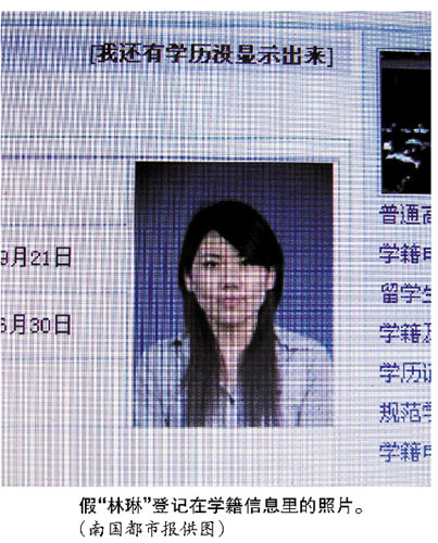 不過,回想起前幾天上網(wǎng)查詢學(xué)籍信息發(fā)現(xiàn)有兩個(gè)自己,并且有一個(gè)自己去年已經(jīng)在武漢提前畢業(yè)時(shí),林琳還覺得有點(diǎn)后怕。林琳介紹說,由于面臨畢業(yè),這段時(shí)間學(xué)校正在為畢業(yè)生辦理離校手續(xù),老師要求他們登錄中國(guó)高等教育學(xué)生信息網(wǎng)核實(shí)自己的學(xué)歷情況。