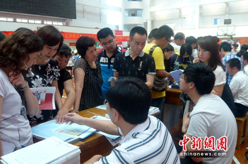 高考填志愿不僅是考生的難題,也是家長的難題。記者在今天的咨詢會(huì)現(xiàn)場(chǎng)上看到很多陪同的家長!拔覀兗议L只是給孩子提供一個(gè)參考,最主要還是要看孩子自己的興趣,大學(xué)的專業(yè)學(xué)習(xí)可能決定孩子一輩子的工作,所以要讓孩子選擇一個(gè)喜歡的專業(yè)!币晃恍諒埖募议L告訴記者。