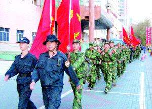 “腳底磨出水泡也要繼續(xù)走!”5月9日,晚上9點,一支徒步隊伍途經(jīng)市中心的西大橋路段,身穿迷彩服的年輕教官對已經(jīng)走了12個小時、50多公里的50多名學員大聲地喊著。隊伍中的學員最小的12歲,最大的19歲,他們統(tǒng)一穿著迷彩服,3名新學員皮膚略顯白皙外,其余的學員臉上都有陽光暴曬后的痕跡。