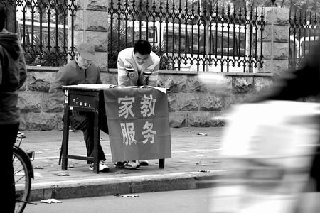 “暑假前半個月,招工廣告就遍布校園。南方的加工企業(yè)和保安公司的居多,所以,想暑假掙些錢又不想呆在學(xué)校的同學(xué)報(bào)名踴躍。而不想離開學(xué)校的同學(xué)有的做家教,還有一些有經(jīng)驗(yàn)的高年級學(xué)生辦起了暑假輔導(dǎo)班,用自己大學(xué)生的知識優(yōu)勢輔導(dǎo)中小學(xué)生。但更多的同學(xué)是通過街頭小廣告或勞動力資源市場尋找適合自己的工作崗位!膘杳系抡f,暑假期間,學(xué)校因?yàn)橛姓猩裙ぷ鳎矔峁┮恍┐蚬徫,但?shù)量非常有限,大學(xué)生打工的整體情況很難把握。