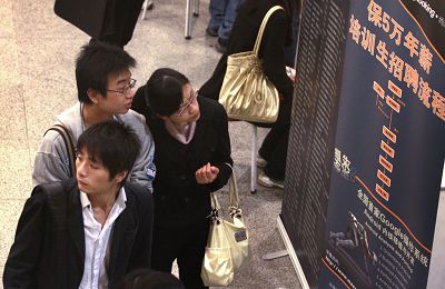 市人才服務(wù)中心的信息顯示,同樣受經(jīng)濟形勢影響,今年招聘會前來應(yīng)聘的人比往年多,但招聘的有效崗位相對減少。人才市場上,時?梢08屆應(yīng)屆畢業(yè)生的身影。而本科畢業(yè)生的畢業(yè)起薪愿望大多降至2000元/月。